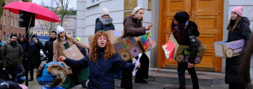 Η Δράση Μνήμης & Διεκδίκησης για Παιδιά & Οικογένειες του Παιδόκηπου: Το Ταξίδι Που Σταμάτησε πραγματοποιήθηκε στις 28.2.2025, στη μεγάλη συγκέντρωση για τα Τέμπη έξω από την Ελληνική Πρεσβεία στην Κοπεγχάγη.